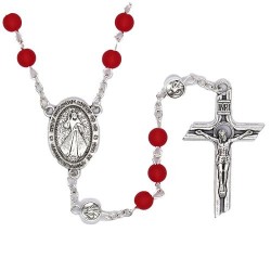 Chapelet grains rouge 6 mm + Christ Miséricordieux