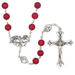 Chapelet grains rouge 8 mm + coeurs sacrés
