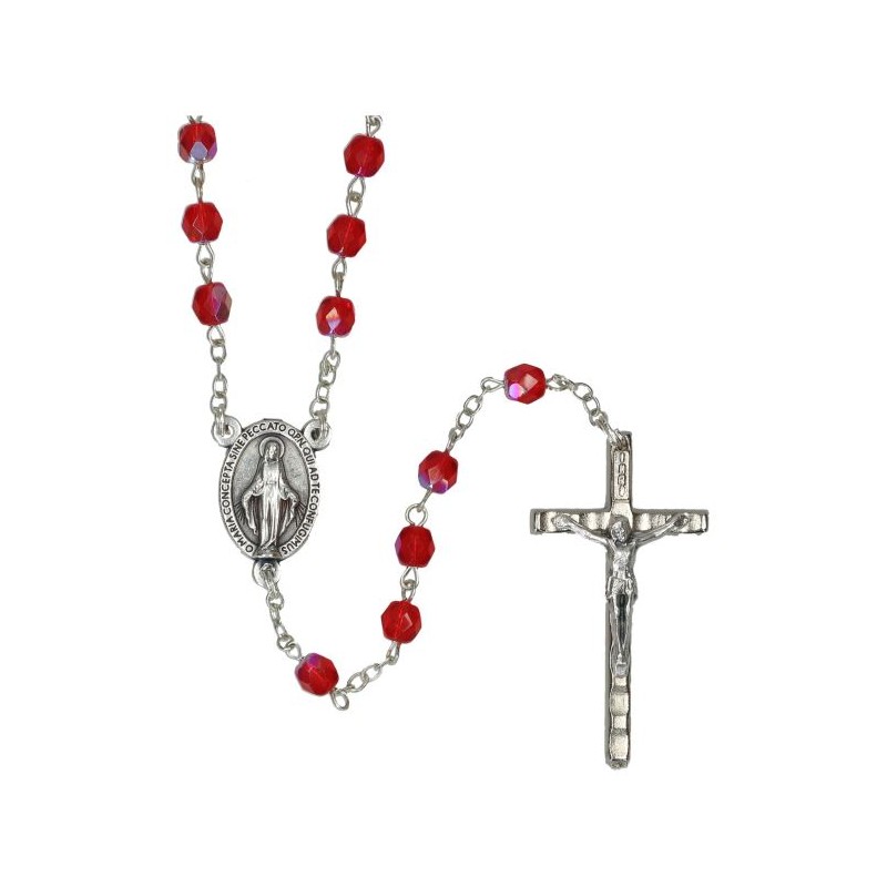 Chapelet - Semi-Cristal - Rouge + mousqueton
