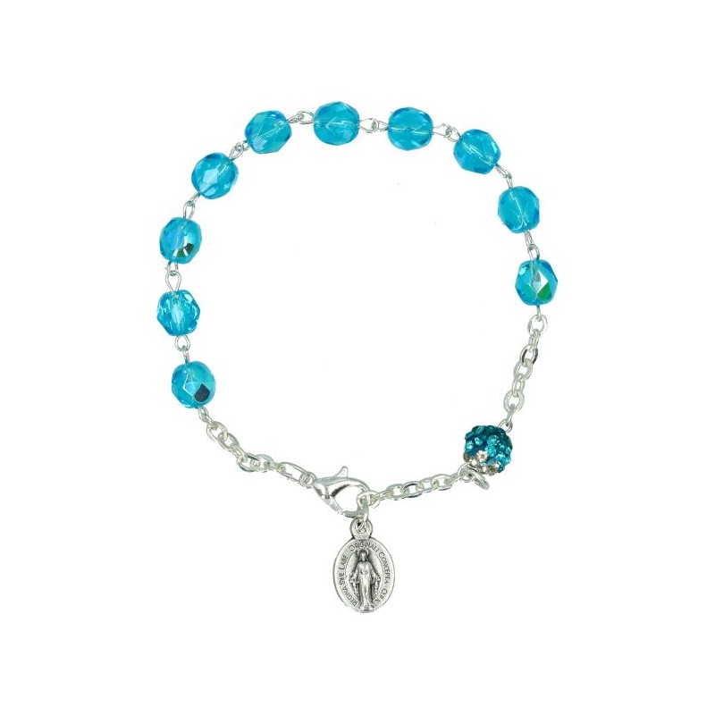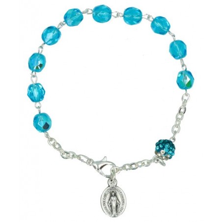 Bracelet semi-cristal bleu clair + Méd. Miraculeuse