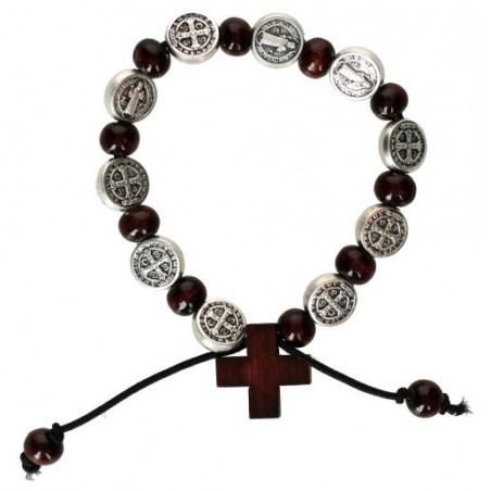 Bracelet s/corde Bois marron + Méd. St Benoît