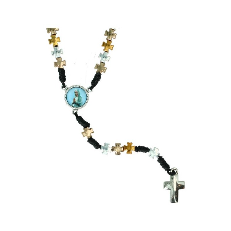 Chapelet s/corde Croix argentées et dorées