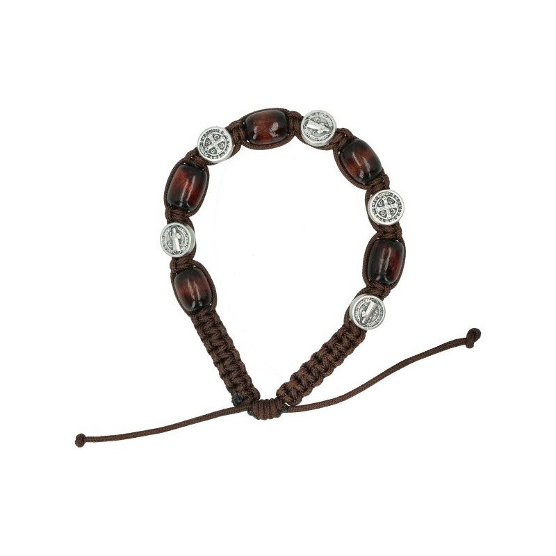Bracelet s/corde Bois naturel + Méd St Benoît