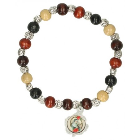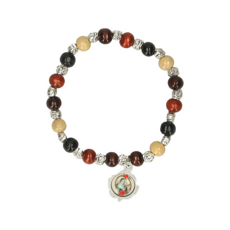 Bracelet sur élastique Bois 3 coul + Méd Ste Rita
