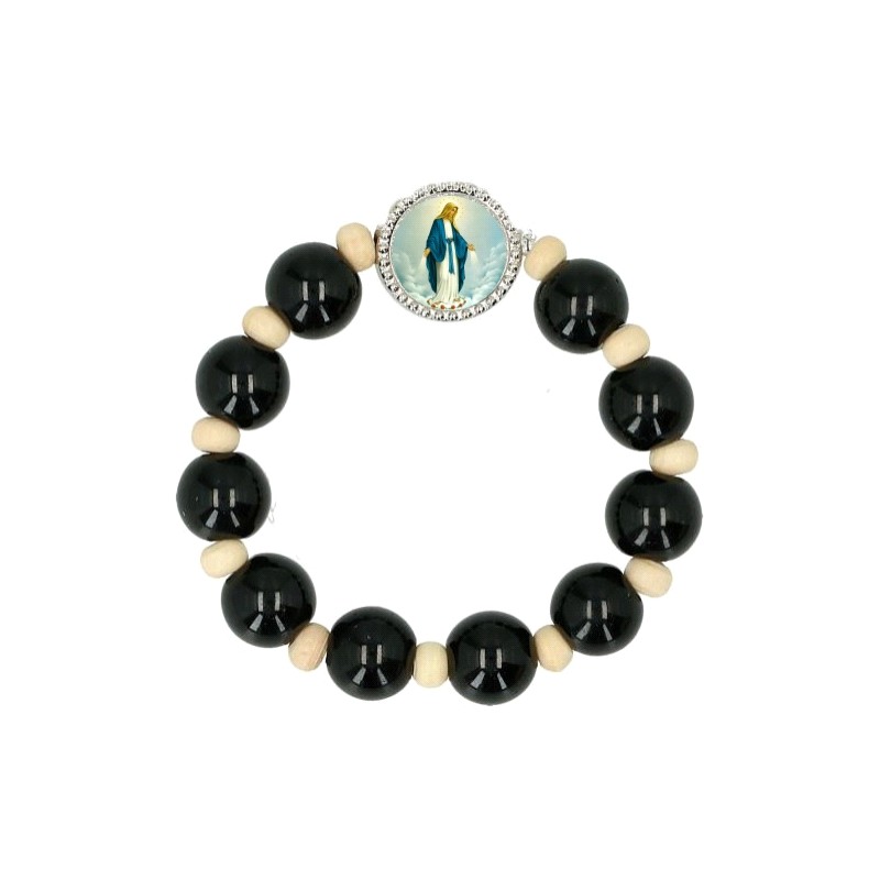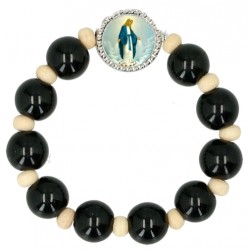 Dizainier sur élastique bois noir et beige avec image de N.D. de la Médaille Miraculeuse.
