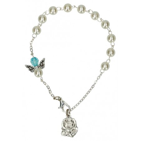Bracelet Imitation perles + Ange + Perle bleue ou rose