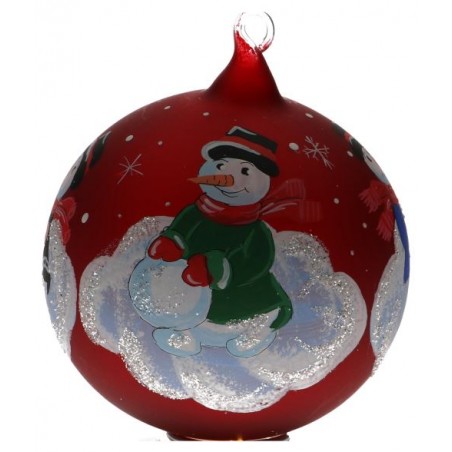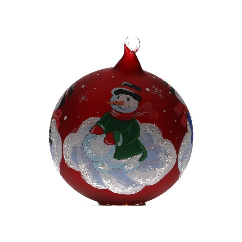 Boule De Noel Rouge Avec Bonhomme De Neige Diam 11 Cm