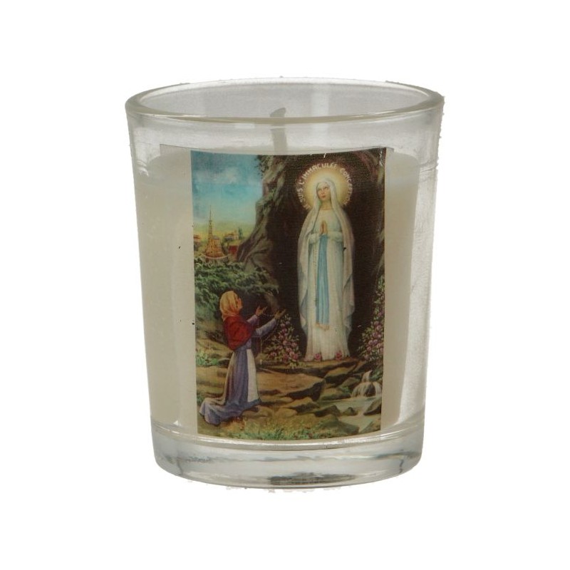 Bougie en verre 65 x 50 mm Notre-Dame de Lourdes