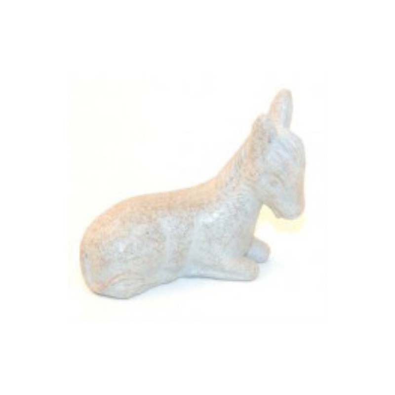 Ezel van 8 cm in witte uitvoering. Gemaakt uit gereconstrueerde steen door "Les Petites Sœurs de Bethléem. Deze ezel wordt doorgaans samen met de os gekocht daar zij beide deel uitmaken van de kerstgroep.