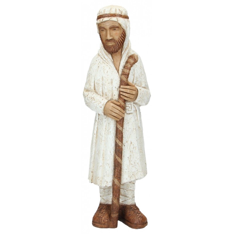 Staande herder van 44 cm in kleur. Gemaakt uit gereconstrueerde steen door "Les Petites Sœurs de Bethléem. Vervolledigt de groep herders van deze kerstset.
