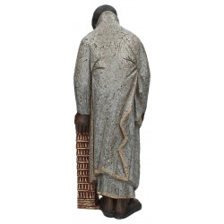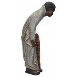 Buigende Koning Melchior van 37 cm in kleur. Gemaakt uit gereconstrueerde steen door "Les Petites Sœurs de Bethléem. Hij behoort tot de set van drie Wijzen van de kerstgroep van Bethleem.