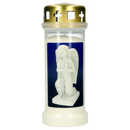 Kaars met goudkleurig deksel die is bestand tegen weersinvloeden zoals regen, storm en wind. Hoogte van de kaars : 17 cm Hoogte van de dopje : 2.5 cm Diameter : 6 cm