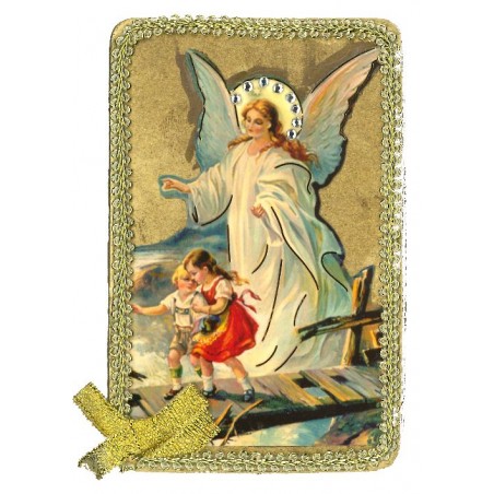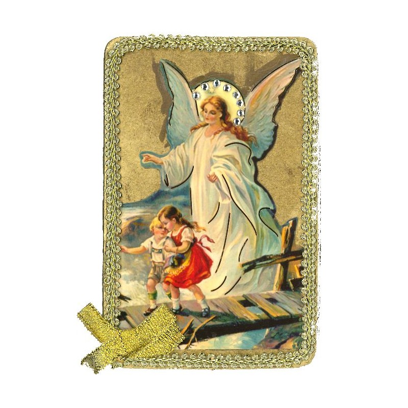 Kader Hout  10.5 x 6.5 cm   Engelbewaarder         Borduur Verguld