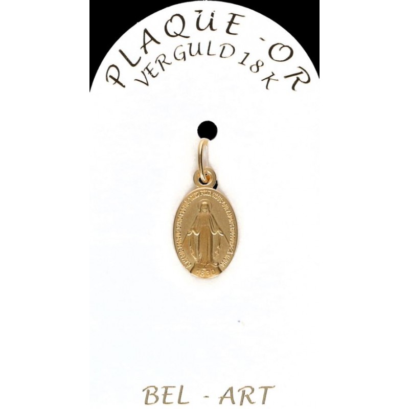 Deze medail is vervaardigd uit plaqué or (doublé of goldplated). Dit betekent dat het sieraad uit metaal een laagje goud door middel van elektrolyse krijgt. Het is een goedkoper alternatief voor goud voor een zeer succesvol resultaat.De sieraden in plaqué or hebben een goede levensduur, maar men moet wel vermijden om deze juwelen in contact te brengen met bijtende producten.