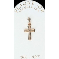 Dit kruisje is vervaardigd uit plaqué or (doublé of goldplated). Dit betekent dat het sieraad uit metaal een laagje goud door middel van elektrolyse krijgt. Het is een goedkoper alternatief voor goud voor een zeer succesvol resultaat.De sieraden in plaqué or hebben een goede levensduur, maar men moet wel vermijden om deze juwelen in contact te brengen met bijtende producten.