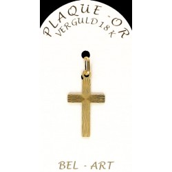 Dit kruisje is vervaardigd uit plaqué or (doublé of goldplated). Dit betekent dat het sieraad uit metaal een laagje goud door middel van elektrolyse krijgt. Het is een goedkoper alternatief voor goud voor een zeer succesvol resultaat.De sieraden in plaqué or hebben een goede levensduur, maar men moet wel vermijden om deze juwelen in contact te brengen met bijtende producten.