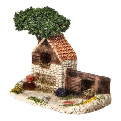 Decor voor santons de Provence Kippenhok met boom - 18 x 10 cm