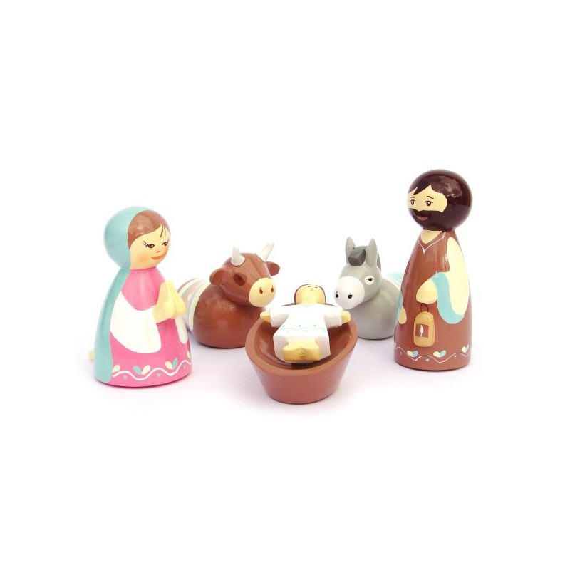 Blauw-roze Maria Kerstgroep 9 cm + doos