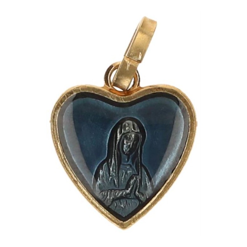 Medaille OLV Biddend - Hart 12 mm Email Blauw