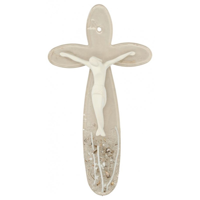 Kruisbeeld in glas 16 Cm wit en beige met witte Christus