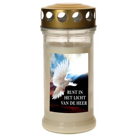 Graflicht in glas met deksel verguld - Duif + Nederlandse tekst - 10 stuks / doos
