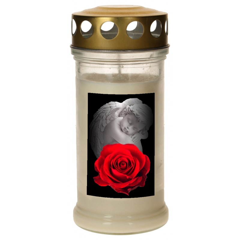 Graflicht in glas met deksel verguld - Engel met roos - 10 stuks / doos