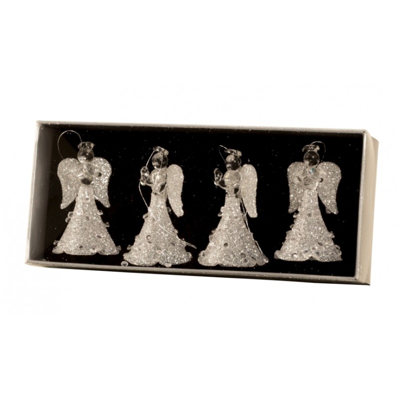 Set van 4 - Biddende glazen engel om op te hangen 8cm