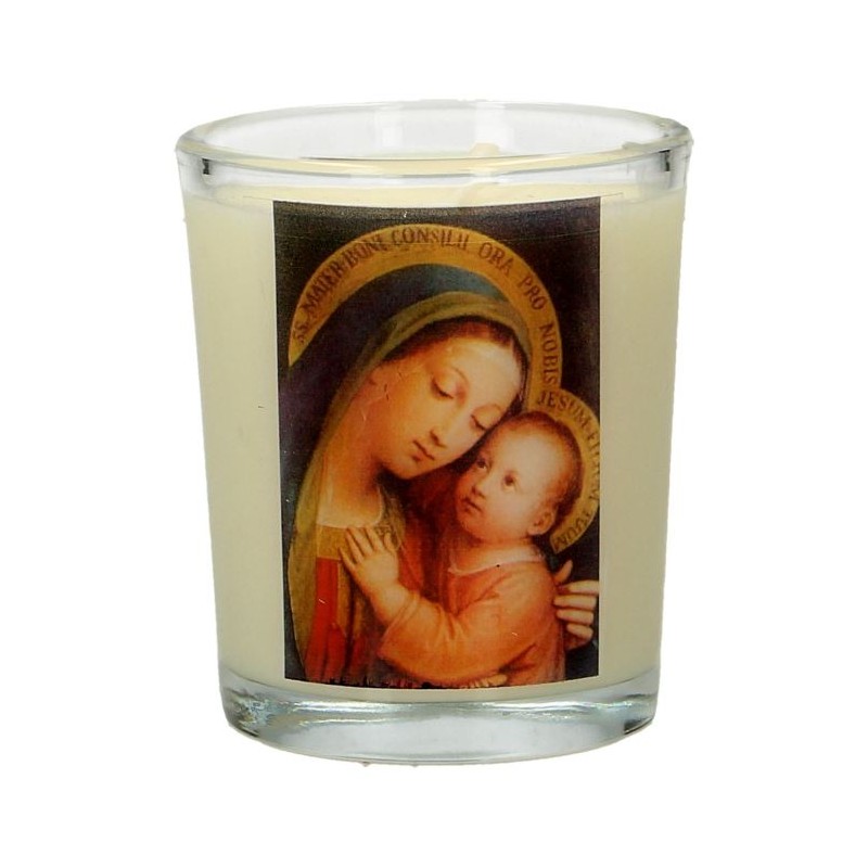 Kaarsje in glas 65 x 50 mm O.L.V. van Goede Raad