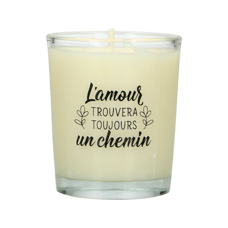 Kaarsje in glas 65 x 50 mm L'amour trouvera toujours un chemin