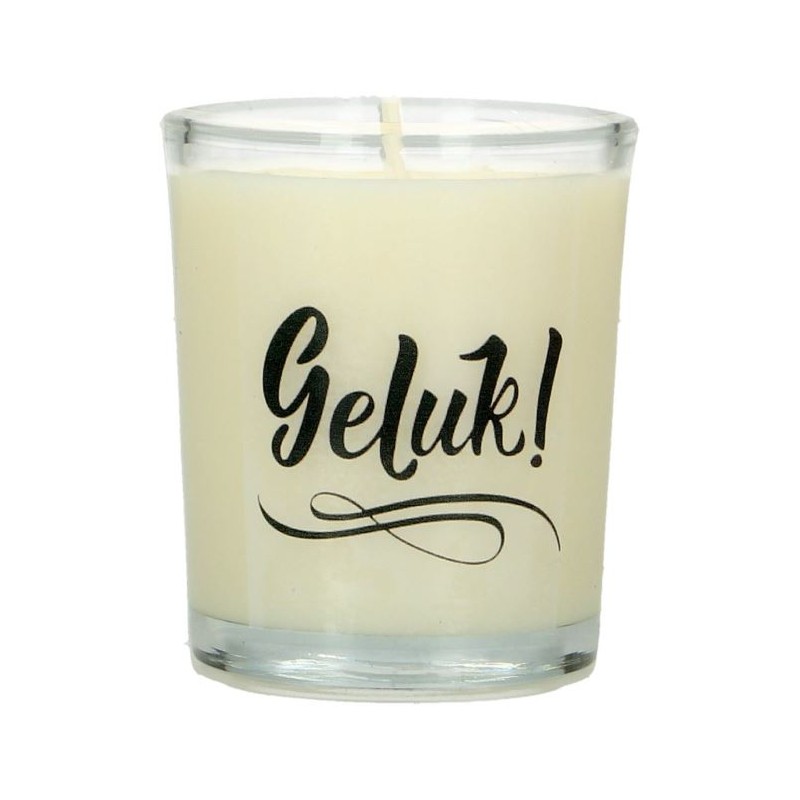 Kaarsje in glas 65 x 50 mm Geluk