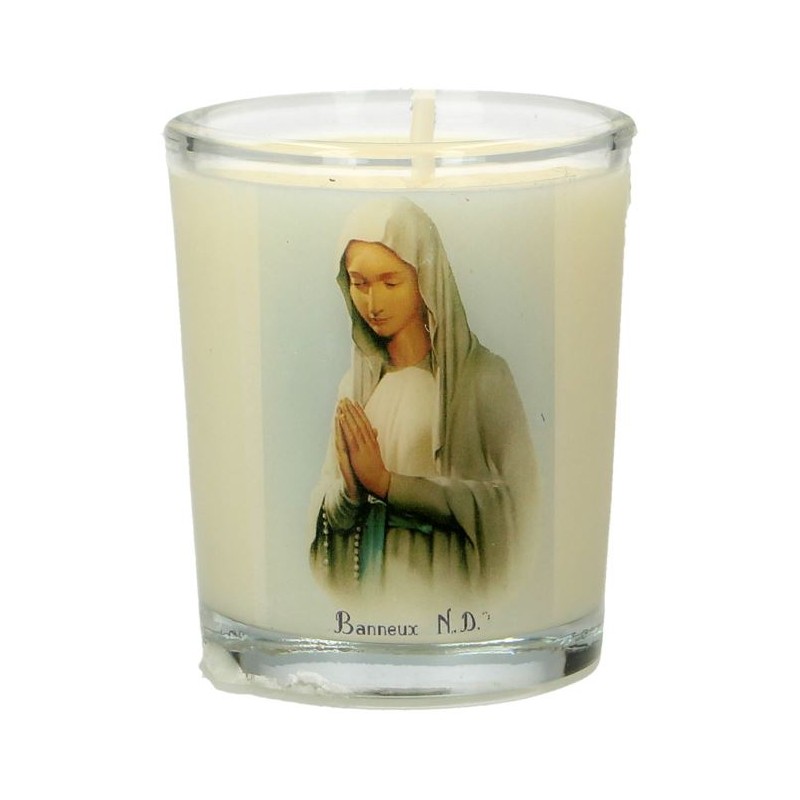 Kaarsje in glas 65 x 50 mm Banneux Borstbeeld
