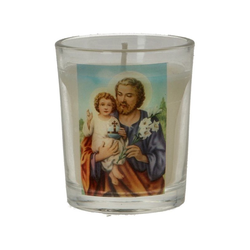 Kaarsje in glas 65 x 50 mm Heilige Jozef