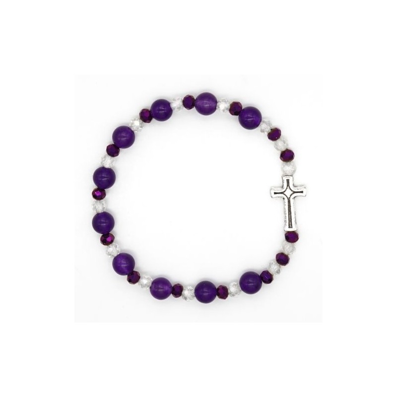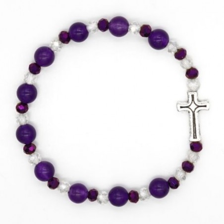 ;armband;elastiek;met;paarse;jada;korrels;kruisje