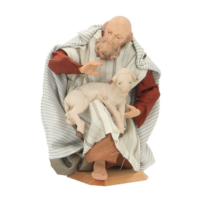 Houtsnijwerk Herder/Geknield/Schaap - H 20 cm Gekleurd