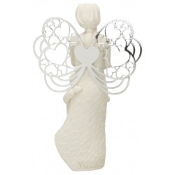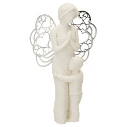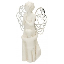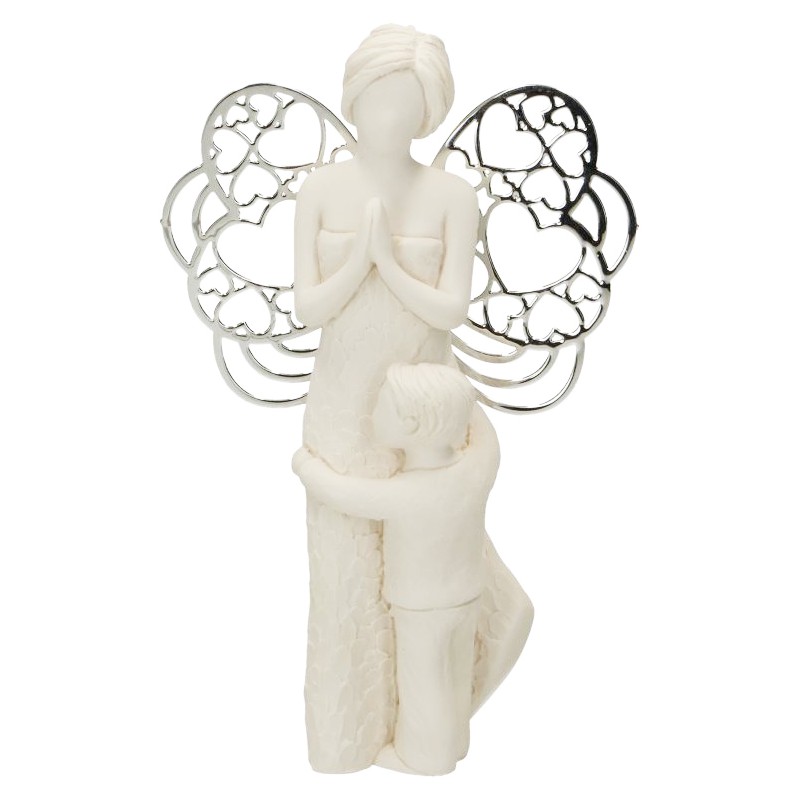 Hars engel met metalen vleugels en jongen 7,5 x 12 cm