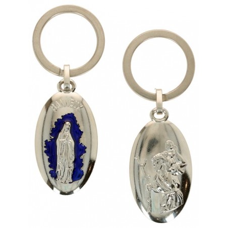 Sleutelhanger O.L.V. van Banneux - H Kristoffel 44 X 26 mm - Email blauw