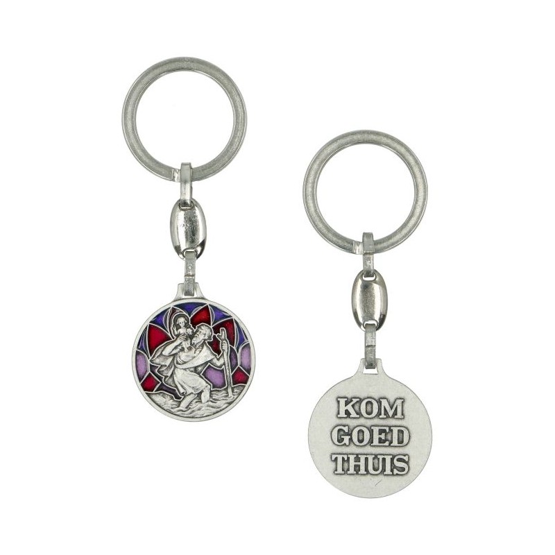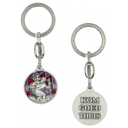 Sleutelhanger - H Kristoffel / Kom goed thuis 30mm Email rood