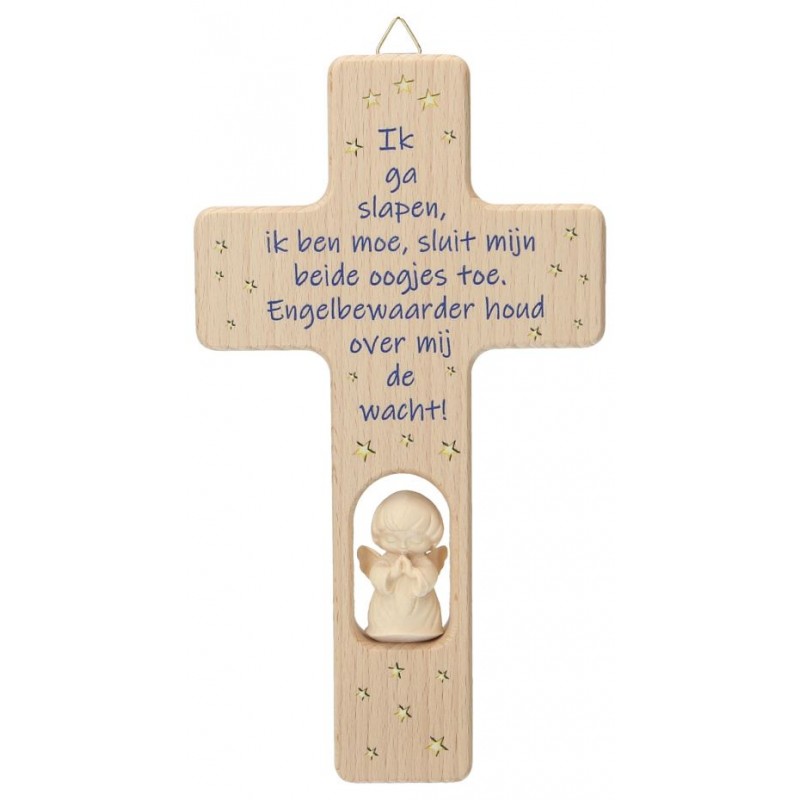 Kruisbeeld in houtsnijwerk - 20 cm - Ik ga slapen - natuur