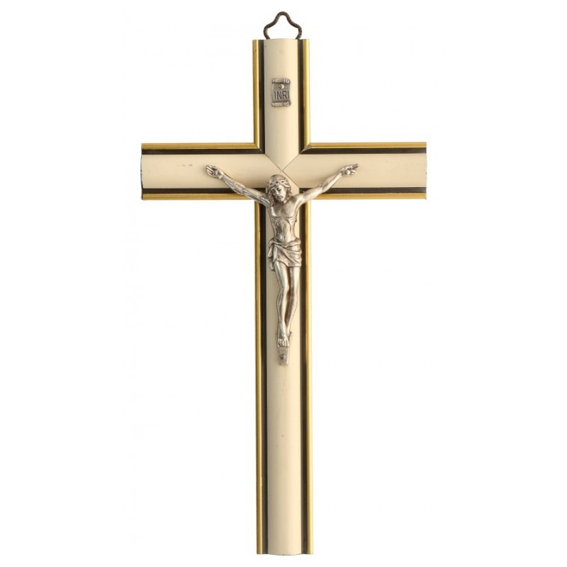 Kruisbeeld - 20 cm - Hout gebombeerd / Wit