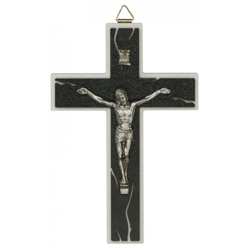 Kruisbeeld - 16 cm - Zwart en wit hout