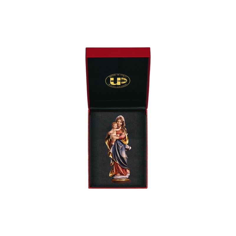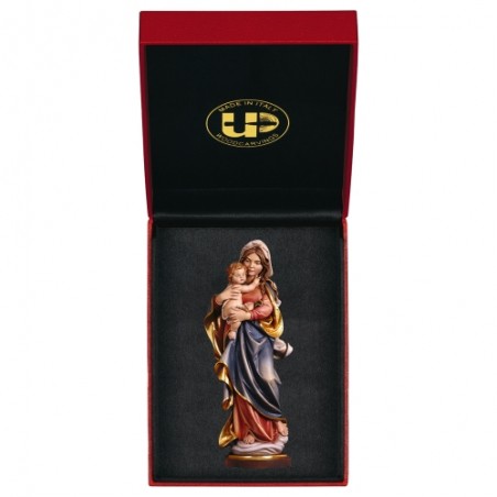 Houtsnijwerk beeld Maria met kind 10 cm gekleurd + etui