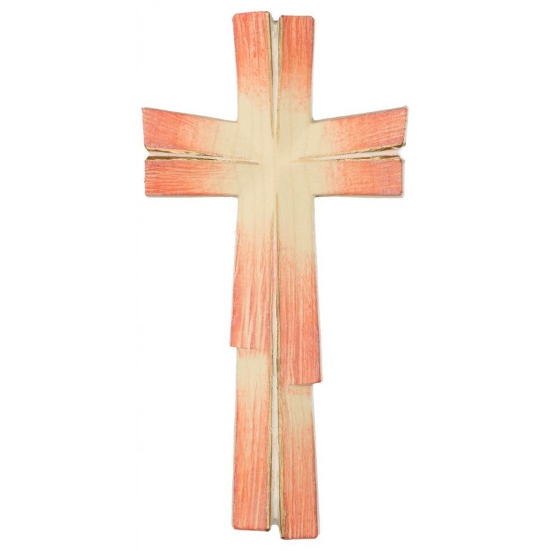 Houtsnijwerk Kruis H 15 cm natuur en rood
