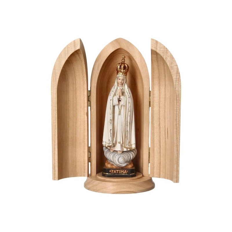 Houtsnijwerk Olv Fatima + Kapelletje H 14 cm Gekleurd