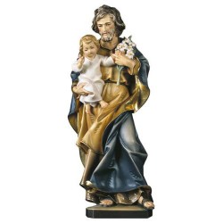 Houtsnijwerk beeld Heilige Jozef met kind en lelie 15 cm gekleurd