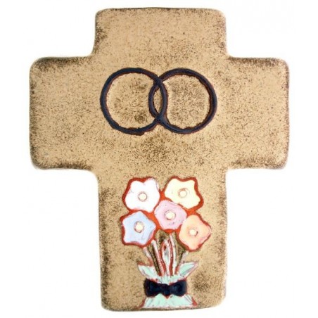 U bent op zoek naar een religieus huwelijksgeschenk ? Dan bent u op het goede adres. Wij hebben in ons gamma namelijk huwelijkskruisbeelden in metaal met de huwelijksringen als symbool met of zonder korpus op het kruisbeeld. De gehuwden kunnen alzo dit kruis in hun woning hangen en genieten van de goddelijke bescherming. Daarenboven zal dit wandkruisbeeld hen telkens herinneren aan hun prachtig huwelijk.
