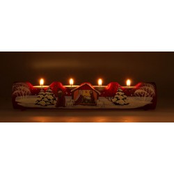 Rode kerstkandelaar in glas met 4 kaarsen - kerststal