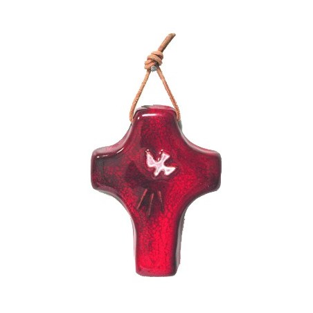 Kruisje Keramiek 9 X 7 Cm Duif Rood