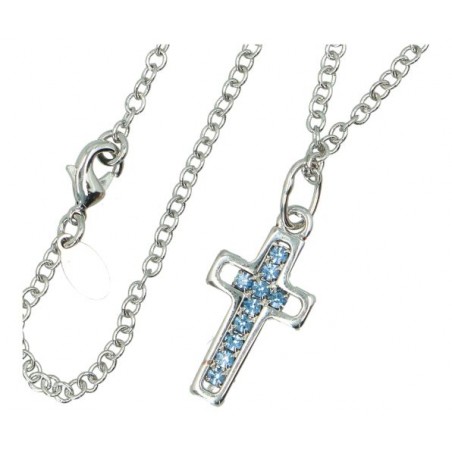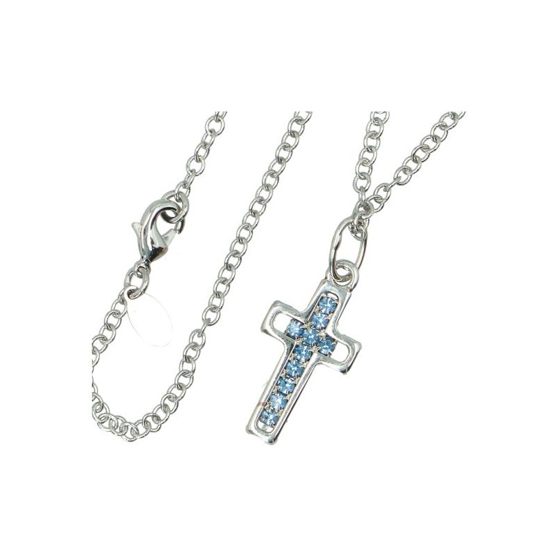 Ketting 50 Cm + Hanger Kruis Aquamarijn