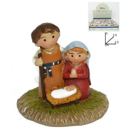 Gekleurde Heilige familie in kinderlijke stijl. 3,5 cm x H3cm. Display met 36 stuks.