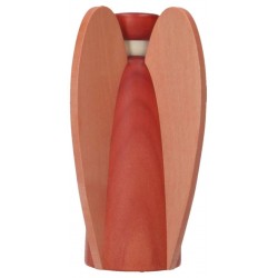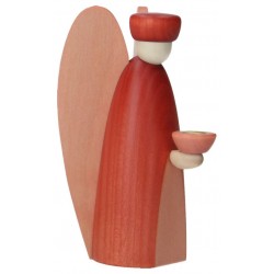 De rode engel past uitstekend bij de warme kleuren van de 10 Kohler figuren zoals de heilige familie, de 3 koningen, herders met schapen en lammetjes.